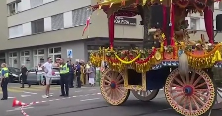 BASILEA - Un carro troppo alto di una processione indù è rimasto impigliato in una linea elettrica della rete tranviaria oggi nel centro di Basilea. Nessuno è rimasto ferito. Il traffico è stato solo momentaneamente interrotto, indica la polizia.