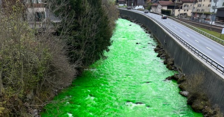 LANDQUART (GR) - Così, all'improvviso il fiume è diventato verde fosforescente. E no, la foto che vedete non è stata rimaneggiata con Photoshop.