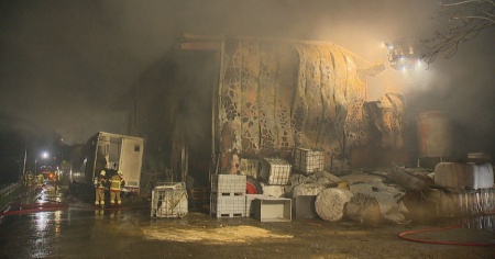L'incendio, le cui cause sono ancora da stabilire, è stato segnalato alle autorità poco dopo mezzanotte. Il fienile era completamente avvolto dalle fiamme, ma i Pompieri hanno impedito che il rogo si propagasse all'abitazione vicina, in cui si trovavano sei persone.
