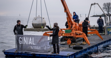 Furto subacqueo di una sfera d'acciaio, piena di gin