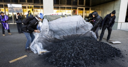 La polizia si è recata sul posto subito dopo l'inizio dell'azione, durata dieci minuti. Nessuno è stato fermato: i protagonisti della manifestazione di malcontento se ne sono andati lasciandosi alle spalle il mucchio di carbone nel quale avevano piantato dei cartelli.