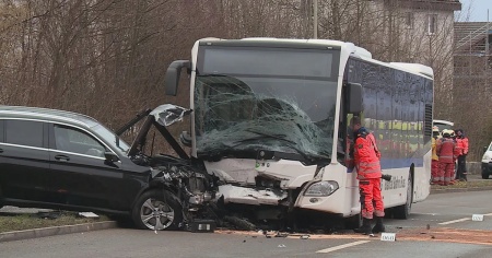 La conducente del veicolo e un passeggero dell'autobus sono stati trasportati in ospedale; altri due passeggeri sono stati curati sul posto