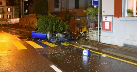 VITZNAU - Uno schianto violento e poi il crollo di due alberi: poteva finire peggio per l'automobilista che sabato scorso sulla Seestrasse è uscito di strada con la sua auto finendo anche per abbattere il muro di una casa.