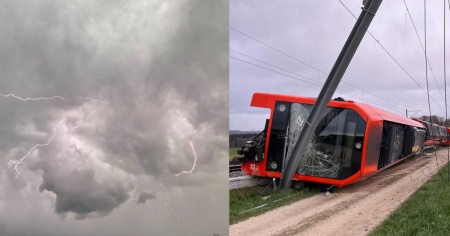 Due deragliamenti causano 12 feriti - Il vento, come accennato, è stato particolarmente forte con raffiche che hanno raggiunto i 130 km/h a Egolzwil (LU) e Koppigen (BE), secondo MeteoSvizzera. A Luscherz, nel canton Berna, un treno è uscito dai binari sulla linea Bienne-Täuffelen-Anet. La Polizia del Canton Berna ha fatto sapere che «tre persone che si trovavano nel vagone ribaltato, compreso il macchinista, sono rimaste ferite e hanno ricevuto cure mediche da quattro squadre di ambulanze prima di essere portate in ospedale».