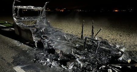 Nonostante l'intervento dei pompieri, la casa su due ruote è stata completamente distrutta, e ci sono stati anche danni alla strada.