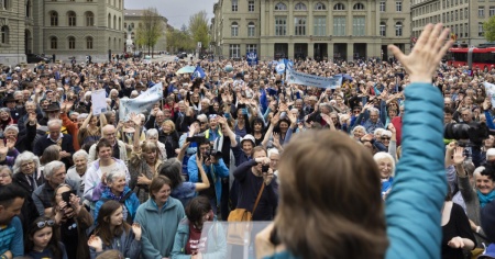BERNA - La Marcia Blu (Marche bleu), partita il 1° aprile da Ginevra, ha raggiunto Berna nella giornata odierna. Circa 150 persone hanno completato la tappa finale, prima di un raduno sulla Piazza federale che ha riunito circa 4000 persone.