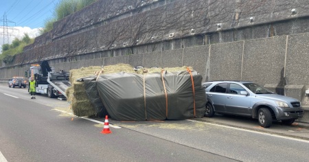 ZUGO - Un rimorchio carico di fieno si è ribaltato ieri pomeriggio sull'autostrada A4 tra Rotkreuz (ZG) e Küssnacht (SZ). Non ci sono feriti e i danni materiali sono stimati in 30'000 franchi.