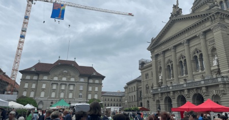 Spettacolare protesta "verde": appesi a una gru sulla Piazza federale
