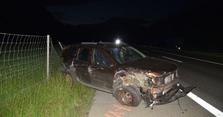DOMAT/EMS - Nella notte tra mercoledì e giovedì, un automobilista ha causato un incidente stradale e ha abbandonato il proprio veicolo - gravemente danneggiato - lungo la corsia d'emergenza, accanto alla recinzione di protezione per la fauna selvatica, anch'essa danneggiata per una lunghezza di 30 metri.