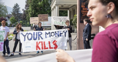 «Glencore out» hanno scandito i partecipanti alla manifestazione organizzata davanti al Casinò Teatro di Zugo, mentre gli azionisti della società si stavano radunando all'interno dell'edificio. Non sono stati segnalati incidenti, secondo un giornalista dell'agenzia di stampa Keystone-ATS presente sul posto.
