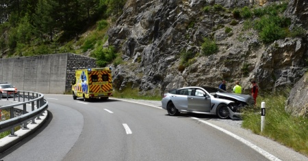 Per motivi ancora da chiarire, un'auto che procedeva in direzione Davos è finita sulla corsia opposta ed è finita contro la parete rocciosa.
