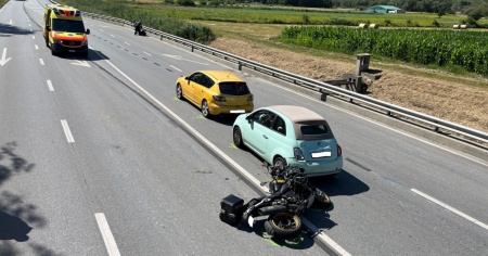 Moto si scontra con due veicoli fermi dopo un incidente