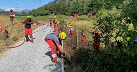 Ieri pomeriggio, verso le 14.45, la polizia è stata informata dell'incendio in un'area di circa un ettaro di superficie lungo la strada di campagna denominata Sogn Gieri. Stando a una nota odierna, i pompieri giunti sul posto hanno individuato anche un deposito di legna in fiamme, a soli 300 metri di distanza.