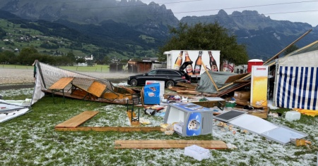 Il temporale ha imperversato verso le 15.00 in località Riet, dove si teneva la festa. Un tendono è crollato, un rimorchio si è ribaltato e diversi oggetti hanno volteggiato in aria, ha reso noto la polizia cantonale di San Gallo.
