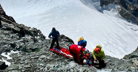 Quando l'aereo italiano ha dovuto abortire la propria missione, è stata allertata Air Zermatt. Come si legge in un comunicato: «Nonostante il forte vento, l'equipaggio dell'elicottero Air Zermatt è riuscito a calare due specialisti per mezzo di una longline a circa 100 metri sopra il luogo dell'incidente. Questo ha permesso agli specialisti di scendere verso l'alpinista gravemente ferito. Con un altro volo, anche il medico d'urgenza è stato calato a circa 100 metri dal luogo dell'incidente».