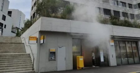 L'ufficio postale di Binningen utilizza un sistema di nebulizzazione come misura di sicurezza.