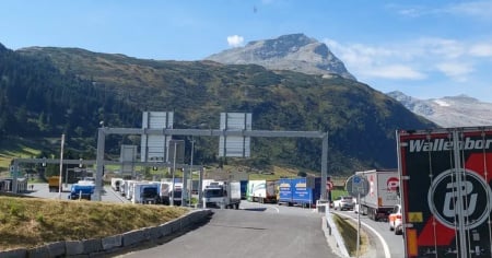 Camion impilati gli uni sugli altri e tempi d'attesa eterni al di là del tunnel per il Passo grigionese.