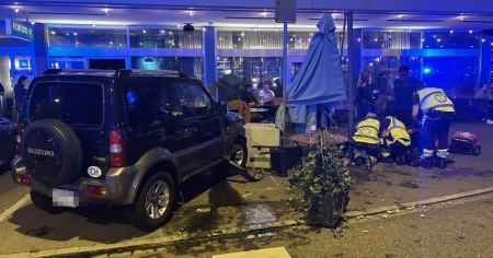 BADEN - Era una serata tranquilla al bar, poi una macchina si è violentemente scontrata con dei blocchi di cemento, spingendo anche i tavolini che si trovavano sulla terrazza della struttura. L'incidente è avvenuto sulla Stadtturms...