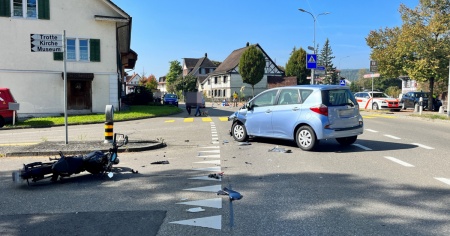 Poco dopo mezzogiorno un automobilista di 40 anni stava circolando in direzione di Frauenfeld, scrive in una nota la Polizia cantonale turgoviese. All'ingresso del paese il conducente voleva svoltare a sinistra sulla Mühlegasse, ma ha finito per scontrarsi con un motociclista.
