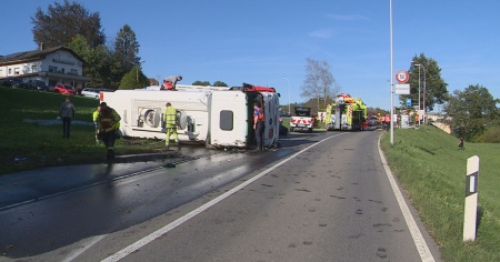 ESCHENBACH - Era carica di gasolio per riscaldamento l'autocisterna che si è ribaltata su un lato mentre era in transito sulla Rothenburgstrasse .
