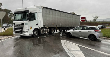 In quel momento proveniva un'auto guidata da una donna: inevitabile l'impatto. Sul posto anche i pompieri per una fuoriuscita di gasolio dall'autoarticolato.