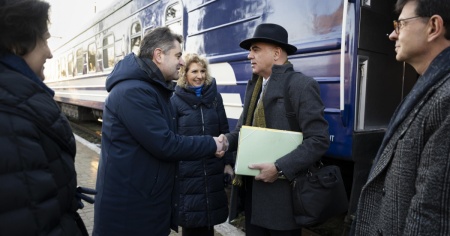 Berset è giunto a Nemishaieve, vicino a Bucha, con un treno notturno. La località è tristemente note per un massacro compiuto dalle truppe russe nella primavera del 2022. Il presidente federale era accompagnato dall'ambasciatore svizzero in Ucraina Felix Baumann ed è stato accolto al suo arrivo dal viceministro degli Esteri ucraino Yevhen Perebyinis.