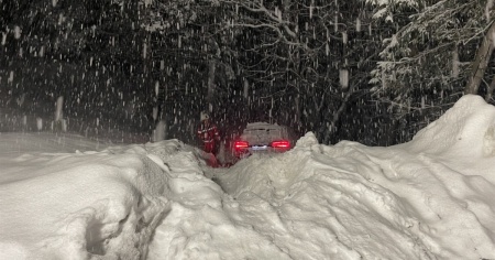 Bloccata nella neve, la donna e i suoi passeggeri sono stati soccorsi dai servizi di emergenza.