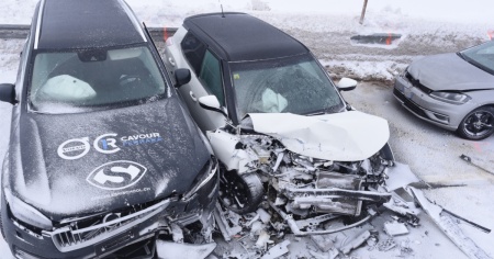 Una donna ha perso il controllo del proprio veicolo sulla strada innevata e ha invaso la corsia di contromano.