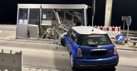 Per motivi ancora da chiarire, l’uomo ha perso il controllo del mezzo ed è finito contro la dogana, danneggiandola in maniera molto grave.