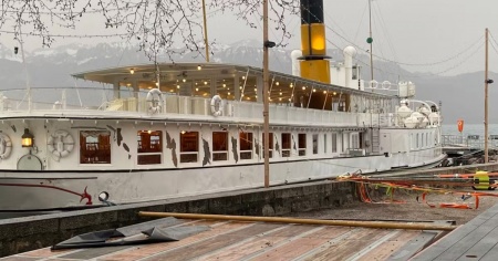 Perimetro messo in sicurezza - Questo sabato mattina, la polizia e i pompieri erano ancora in azione, in particolare per pompare fuori l'acqua che stava ancora entrando nello scafo. Fortunatamente, il lago sembra essersi notevolmente calmato, il che ha dato un po' di tregua al battello storico. Ma i segni della sua lotta notturna sono chiaramente visibili.