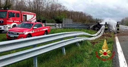 L'incidente - La vettura, lo ricordiamo, si è schiantata contro il guardrail mentre percorreva la bretella autostradale A4-A5 che collega Ivrea e Santhià e ha immediatamente preso fuoco.