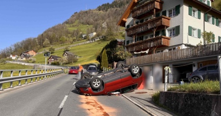 AMDEN - Oggi (11 aprile) paurosa carambola sulla Amdenerstrasse. Un'auto, alla cui guida si trovava una donna di 63 anni, si è ribaltata poco dopo le 8:30.