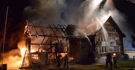 Poco dopo le 2 di notte la centrale cantonale di emergenza di Herisau era stata informata che un fienile con annessa casa stava andando a fuoco. Quando i soccorsi sono arrivati sul luogo dell'incendio, hanno constatato che il fienile era già completamente avvolto dalle fiamme.