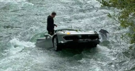 Finisce nel fiume con la Ferrari