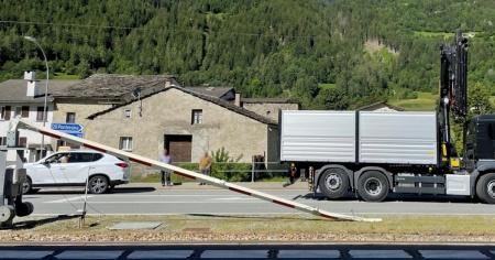 LI CURT - Un veicolo pesante con gru che aggancia nell'attraversamento di un passaggio a livello la linea elettrica della Ferrovia Retica e spezza anche le sbarre: è quanto accaduto questo mercoledì mattina (12 giugno) a Li Curt, nei Grigioni.