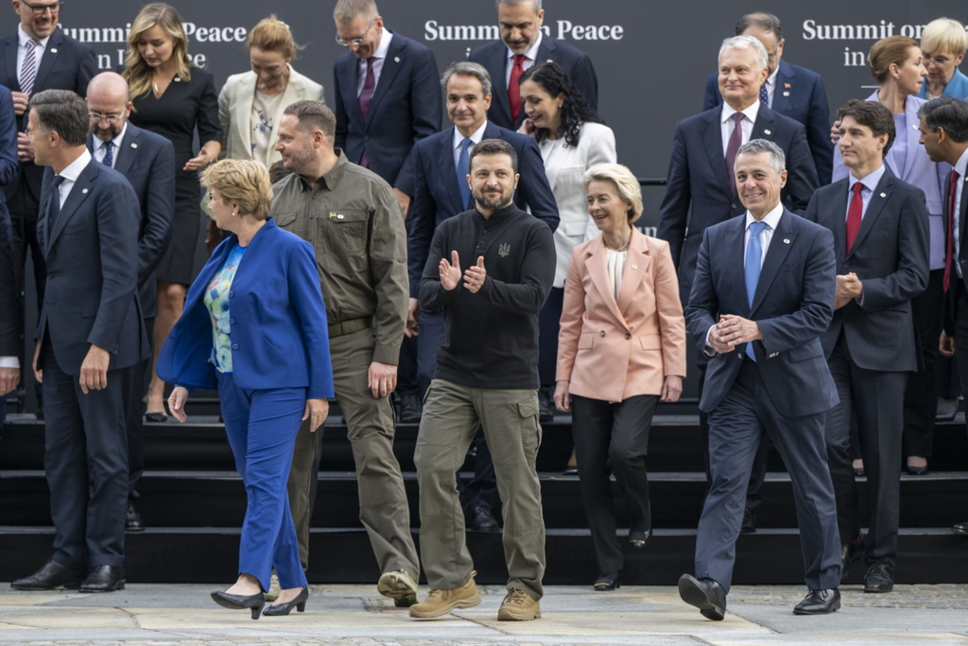 Come fosse una foto di classe. Viola Amherd, impeccabile padrona di casa al Bürgenstock, risponde a una domanda sulla foto che ha fatto il giro delle agenzie, in cui la si vede simpaticamente uscire dalla linea di scatto. Uno scatto in stile berlusconiano insomma. Come si trattasse di una foto ricordo, di quelle che tutti abbiamo fatto a scuola o tra amici al mare. Ma ecco la spiegazione, ripresa da 20minuti: voleva semplicemente assicurarsi che tutti fossero in fila, da perfetta padrona di casa. «E non c'è nessun significato più profondo», ha sottolineato Amherd. (Red)
