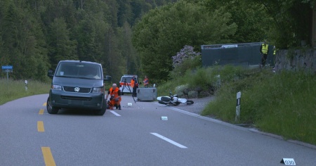 Il conducente della due ruote è rimasto gravemente ferito e, dopo aver ricevuto le prime cure sul posto, è stato trasportato in ospedale con l'elicottero di soccorso. Il conducente dell'auto è rimasto illeso. Entrambi i veicoli hanno subito notevoli danni materiali.
