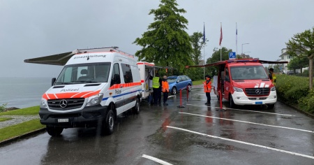 Una barca a vela cola a picco nel lago di Zugo, a bordo c'era un uomo