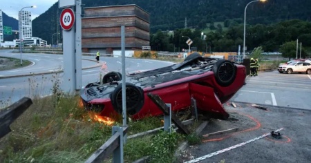 COIRA - Rocambolesco incidente, per fortuna senza gravi conseguenze, ieri sera nei pressi di Coira: un'auto guidata da un 39enne ha sbandato e ha attraversato la corsia opposta, si è poi ribaltata ed è atterrata sul tetto in un parcheggio.