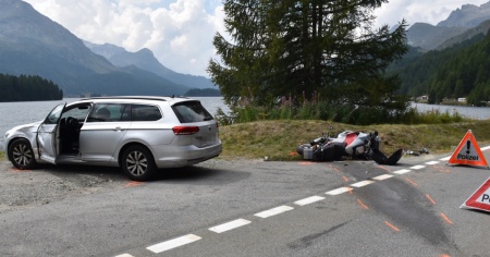SEGL - Scontro auto-moto questo pomeriggio - primo settembre - lungo la statale H3 in direzione Maloja. Un'automobilista di 34 enne stava guidando con alle spalle una moto con in sella un 66enne alla guida e dietro un passeggero di 67 anni.