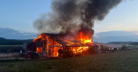 TRASADINGEN - Una stalla è stata completamente distrutta da un incendio scoppiato martedì sera a Trasadingen, nel canton Sciaffusa.