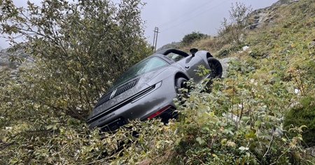 Auto esce di strada e scivola in un dirupo. Fermata da un cespuglio