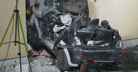 Nel violento scontro è rimasto ferito anche un 43enne che si trovava all'interno dell'abitazione. Una parte del muro, come si vede nelle fotografie, è crollata. L'uomo è stato portato in ospedale dai servizi di emergenza.
