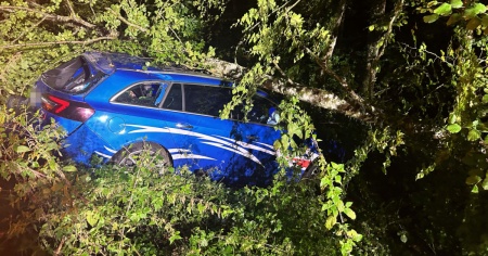 Durante l'operazione l'Opel ha urtato la banchina di ghiaia a lato della carreggiata ed è finita tra gli alberi. L'auto, incastrata tra la vegetazione, è andata completamente distrutta. Il conducente ha riportato lievi ferite al volto ed è stato trasportato in ospedale per controlli.