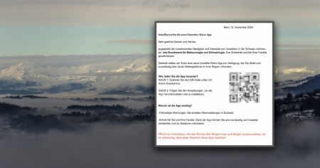Nella lettera chiedono ai destinatari di installare una nuova app d'allerta meteo, ma non esiste una simile app della Confederazione. Il codice QR presente nella lettera porta invece al download di un malware denominato «Coper» (noto anche come «Octo2»).