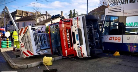 ONEX - Un tram dei trasporti pubblici ginevrini si è scontrato stamane con un camion dei pompieri a Onex (GE): il mezzo è uscito dai binari mentre il mezzo pesante si è rovesciato su un fianco. Fortunatamente nessuno è rimasto ferito.