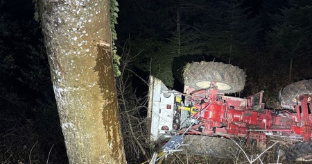 L'uomo stava abbattendo un albero quando il mezzo agricolo è scivolato in una scarpata.