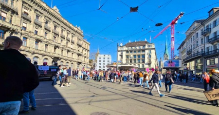 La manifestazione si è svolta nella Paradeplatz. Nel centro città diverse linee dei tram sono state interrotte.