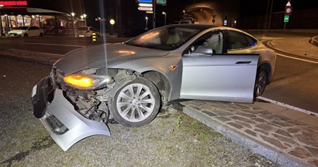 Tesla targata Ticino si schianta contro un palo spartitraffico