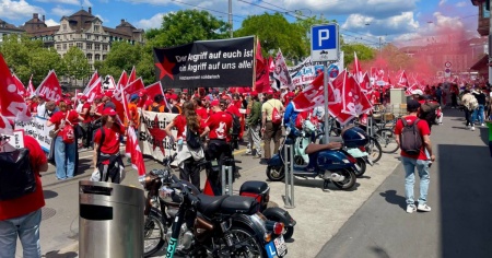 A Zurigo, un escavatore ha guidato il corteo e gli altoparlanti hanno suonato canti operai italiani. I manifestanti provenivano da tutta la Svizzera tedesca e dal Ticino. Diversi gruppi con tamburi hanno animato la manifestazione, accompagnati da centinaia di fischietti e fumogeni rossi. Molti lavoratori, soprattutto uomini, portavano bandiere di Unia. In fondo al corteo dominavano le bandiere di Syna.